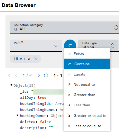 February 24, 2026: Data Browser search | Contains operator added to Operator selector button