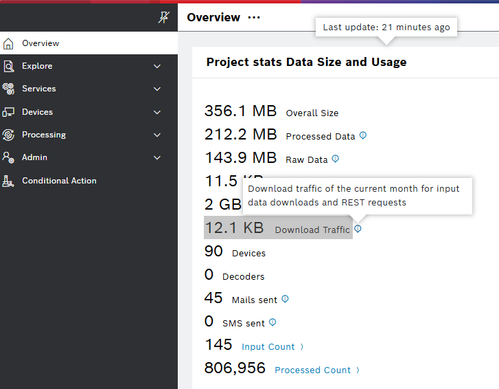 The Action Button and Upload widgets are now enabled for free plans, too. They can be used in free plans to send request towards the Bosch IoT Insights REST API. But free plans are prohibited to send REST requests to external services.