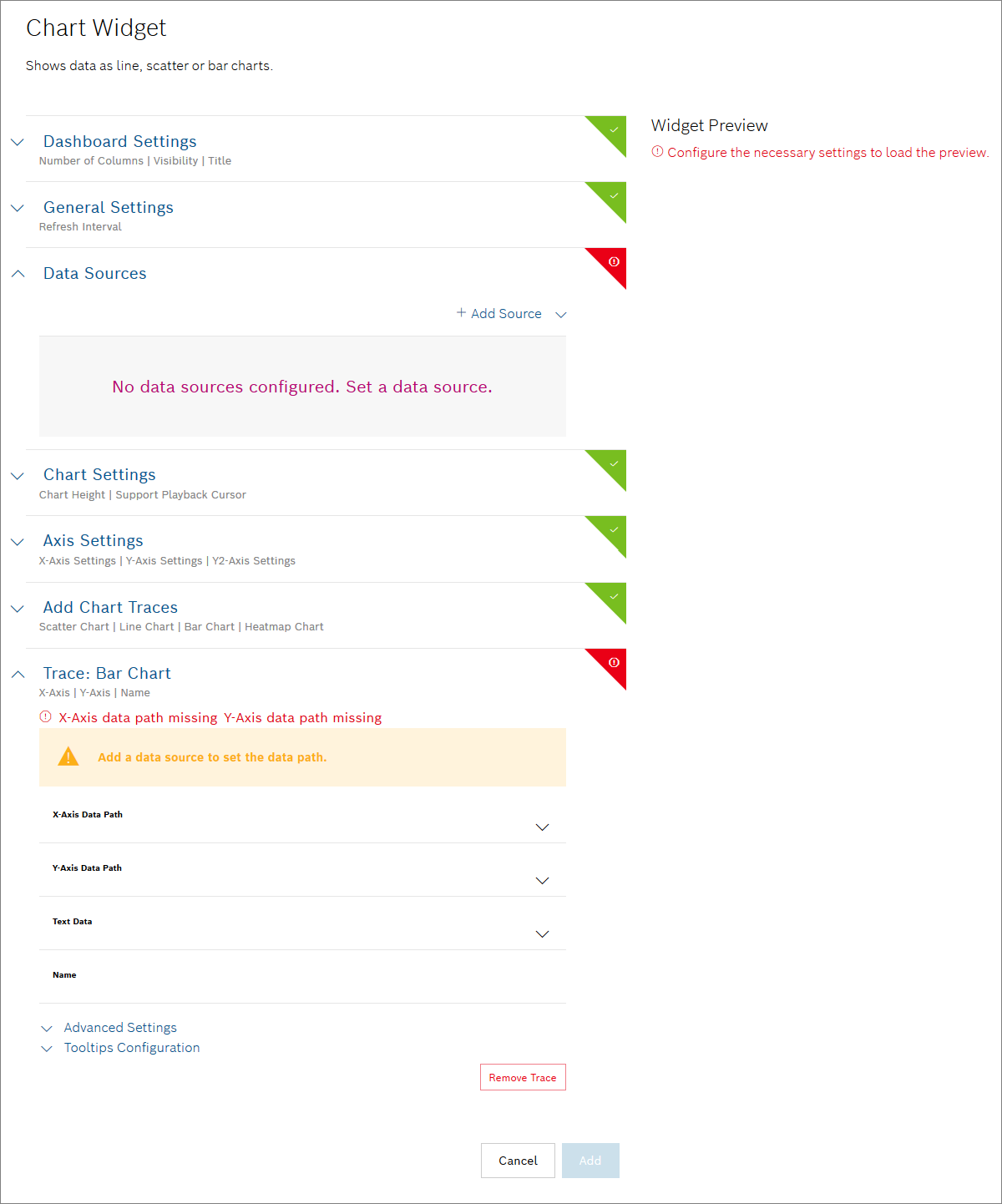 - Click the Advanced Settings drop-down menu to further configure the chart widget.
