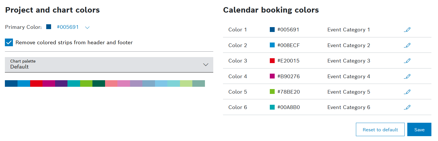 → The Default event color is applied as Booking color. - Click the Edit icon next to the title of the Booking Color information block.