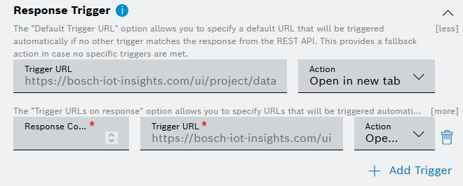 - In the Trigger URL field, enter a URL that will be opened for the response code which you will enter in the Response Code field.