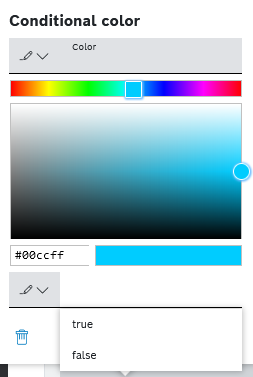 - If you have selected Boolean as Value Type in Data Type Handling section, select either true or false. You can define another conditional color for the other value as well.