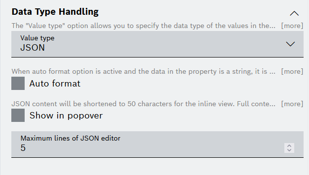 In the Maximum lines of JSON editor field, define the number of rows to be displayed before scrolling is necessary.
