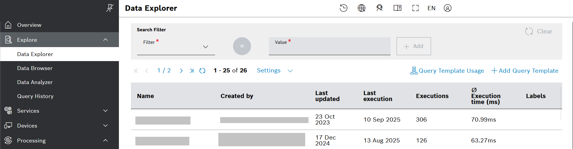 - On the left navigation, go to Explore > Data Explorer and click Add Query Template in the top right area.
