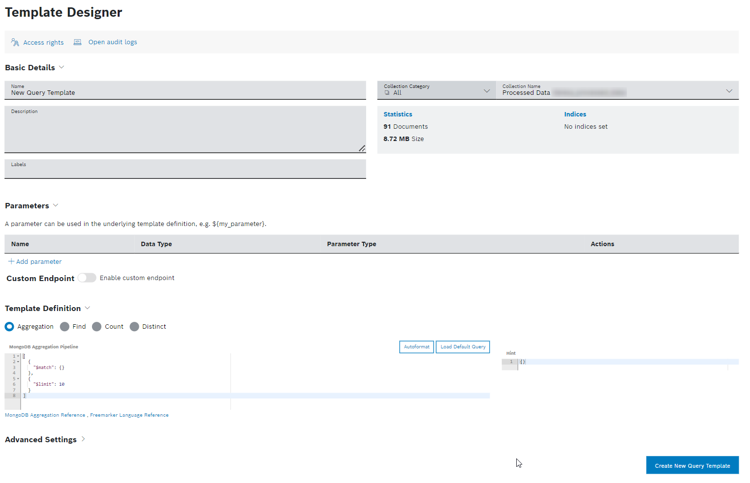 - Click the Create New Query Template button to create the query template.