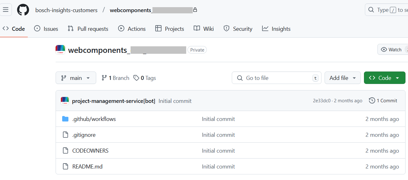 - A job is configured which uses the bosch-insights-customers/workflows/.github/workflows/deployer.yml@main workflow provided by us.
