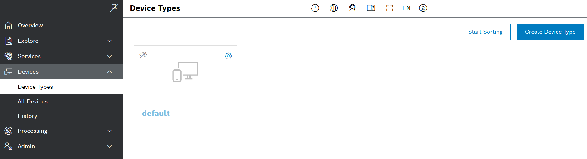 Every device in the system belongs to a certain device type. Therefore, let's first create a device type.