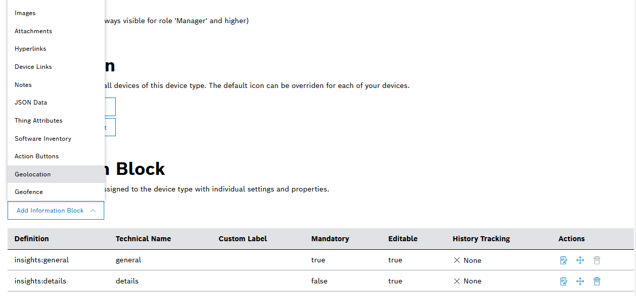 6. Some information blocks, such as general and details, are added by default, however, we need some more. Therefore, click the Add Information Block button and select the Geolocation option.