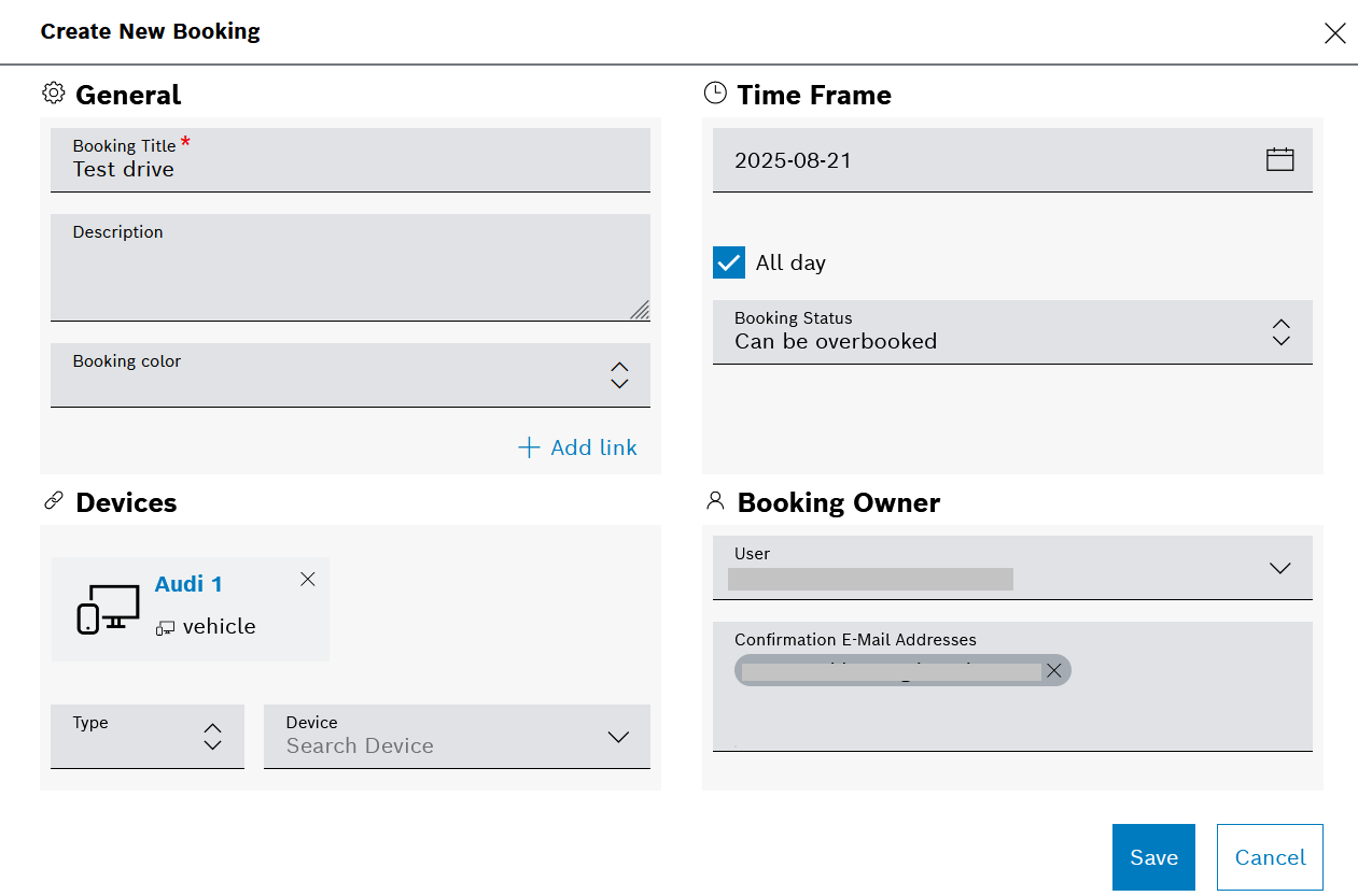 You can make a booking directly here in the device configuration view or later in the calendar widget. Let's see how it can be done here.