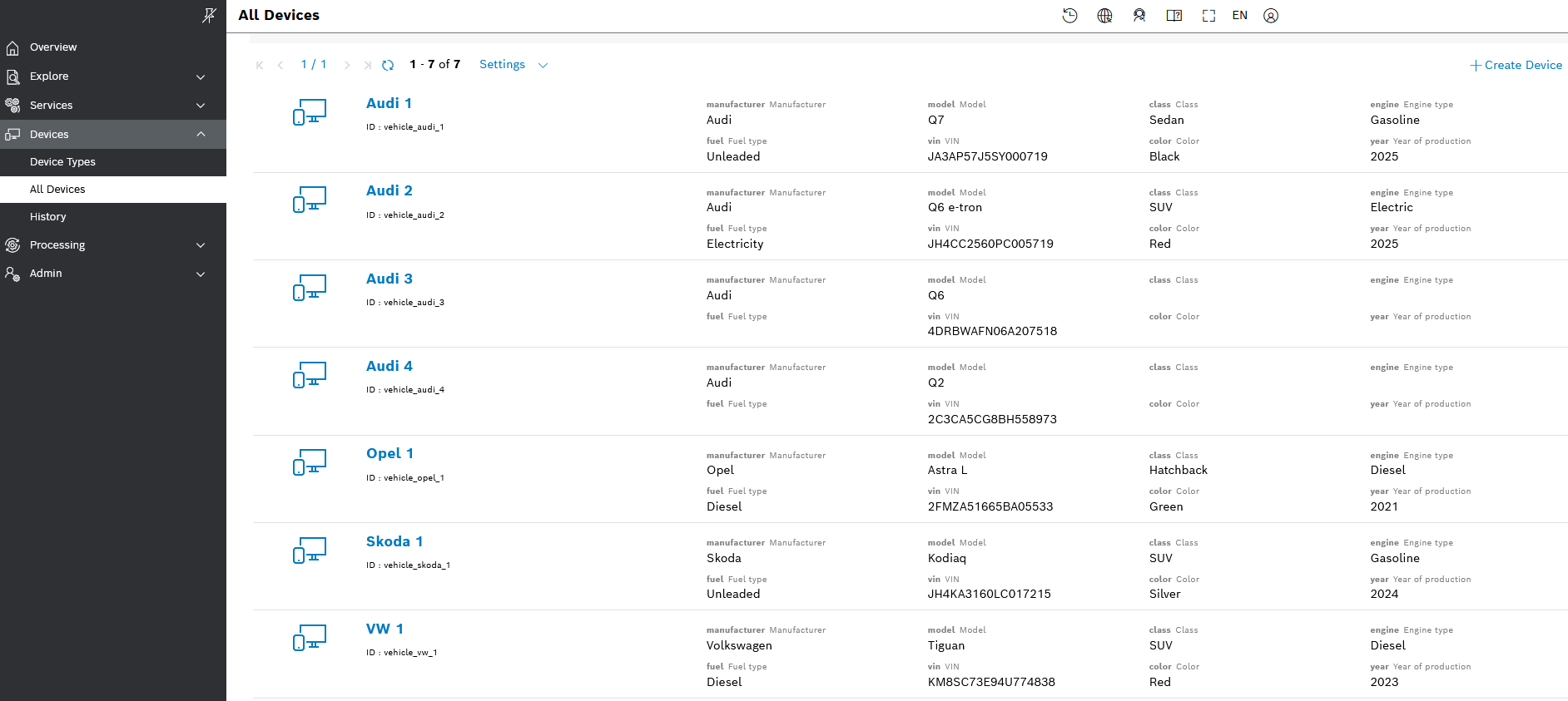 However, devices can also be created automatically by the system, when data is ingested for devices whose IDs are missing in the system. How to activate this option is described in the Default pipeline settings part of this tutorial.