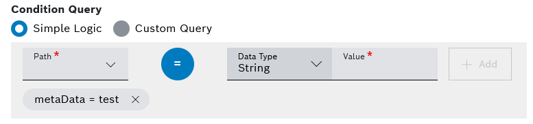 - For Simple Logic, select a Path from the drop-down list, choose an Operator and a Data Type, and enter a Value.