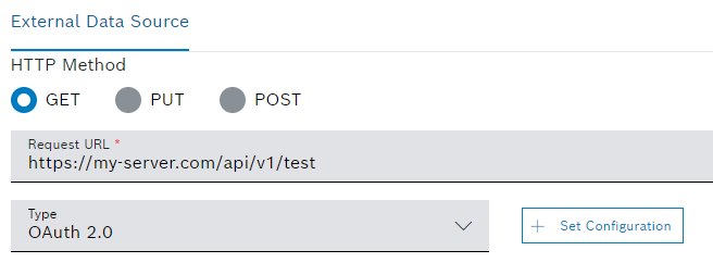 like the Action Button widget, Table widget or any other widget supported by Bosch IoT Insights.For this, the external data source authorization type must be OAuth 2.0.