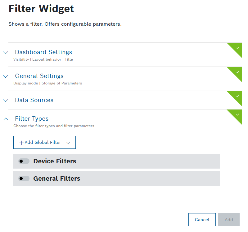 Configuring the Filter widget