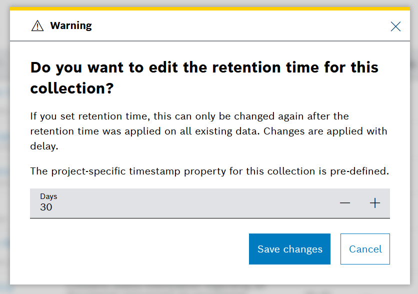 You can configure the retention time for processed data collections in days for a specific time property path.