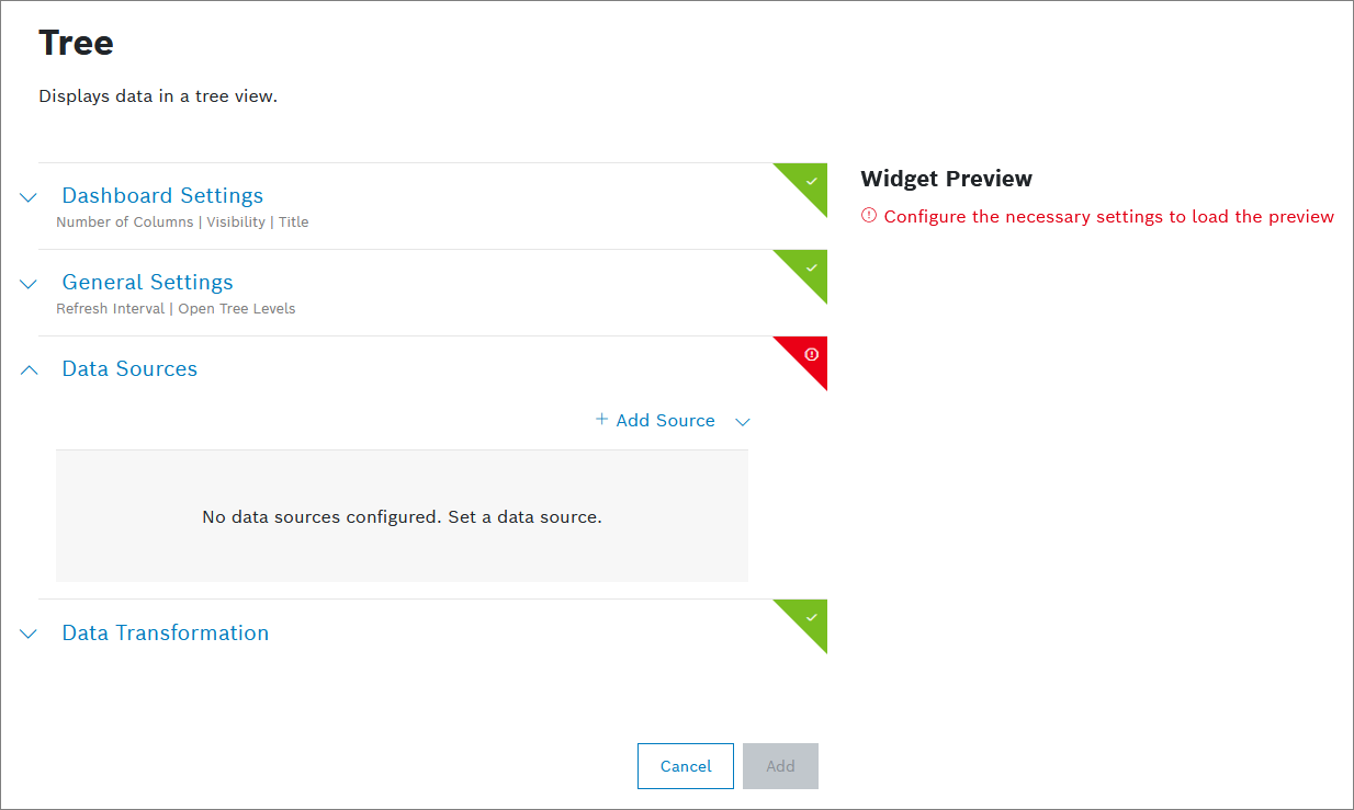 Open the Data Sources pane to configure the data source for the widget.
