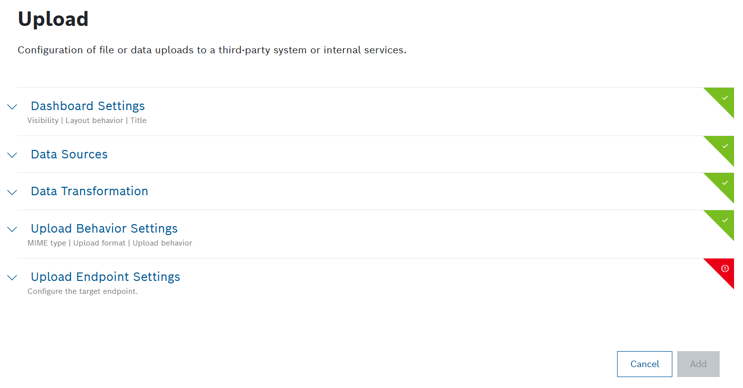 Open the Upload Endpoint Settings pane to configure a target endpoint.