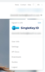Accessing the user menu (for users authenticated via SingleKey ID)