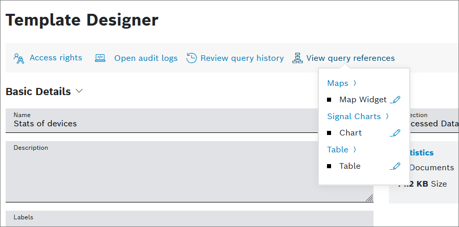 → The query template is displayed in editing mode. - Click the View query references button.
